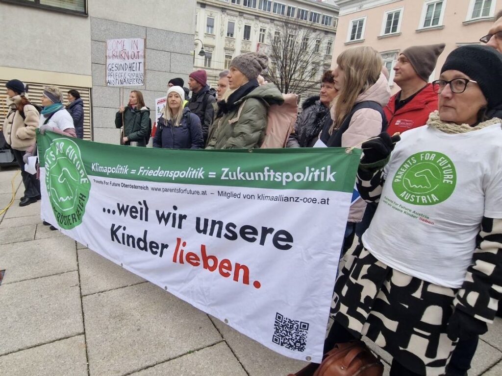 Am 3. Dezember setzten Parents For Future Oberösterreich gemeinsam mit der Klima-Allianz OÖ und den oberösterreichischen Ordenskliniken ein starkes Zeichen für ein widerstandsfähiges Gesundheitssystem. Unter dem Motto „Wir sorgen gemeinsam“ fanden Kundgebungen in Wels, Linz und Ried statt, um auf die zunehmenden Belastungen durch die Klimaerhitzung aufmerksam zu machen.